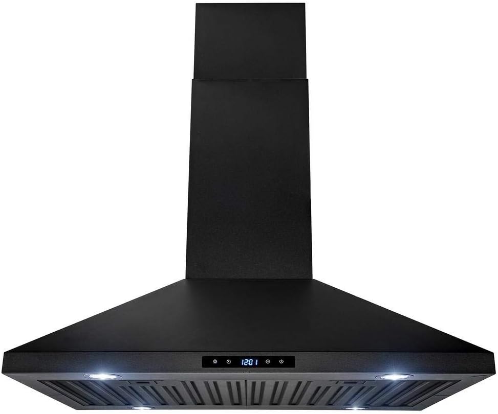 30" Island Mount Black Painted Finish Stainless Steel Touch Panel Kitchen Range Hood Cooking Fan